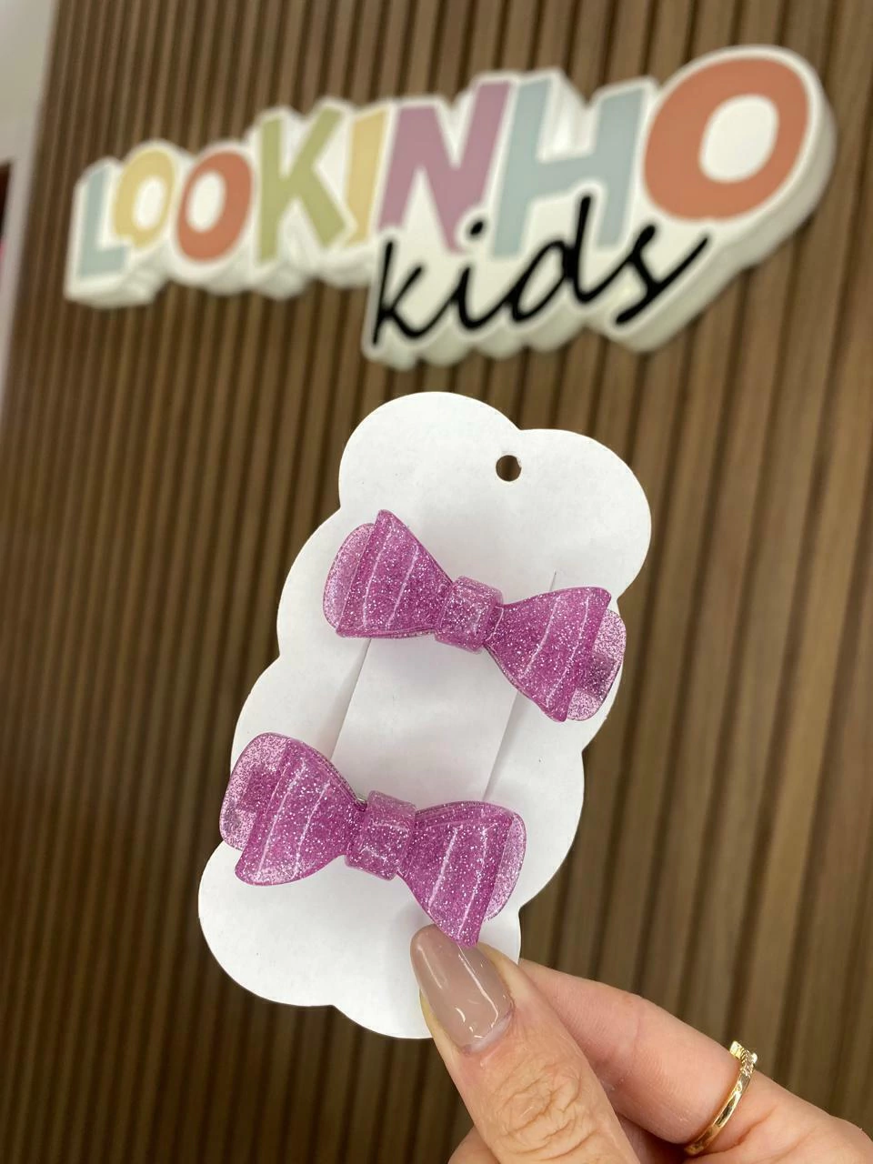 · Par de laços em acrílico no bico de pato;
