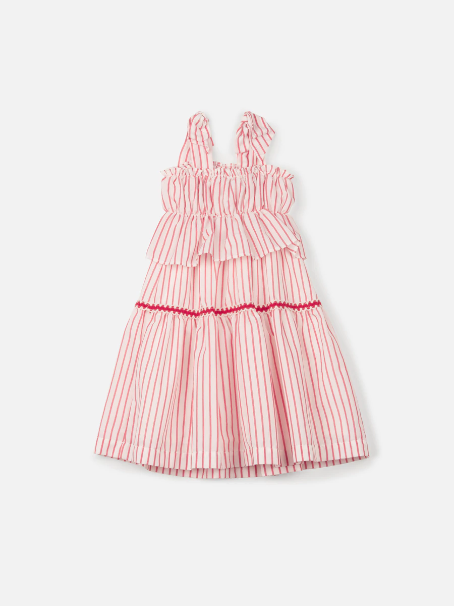 Charmoso e moderno, o vestido listrado vermelho Animê é perfeito para ocasiões especiais. Com design exclusivo, tecido de alta qualidade e caimento impecável, ele combina conforto e estilo para as pequenas que adoram se destacar com elegância.