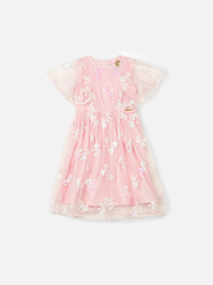 Vestido Tule Laços Paetê Animê